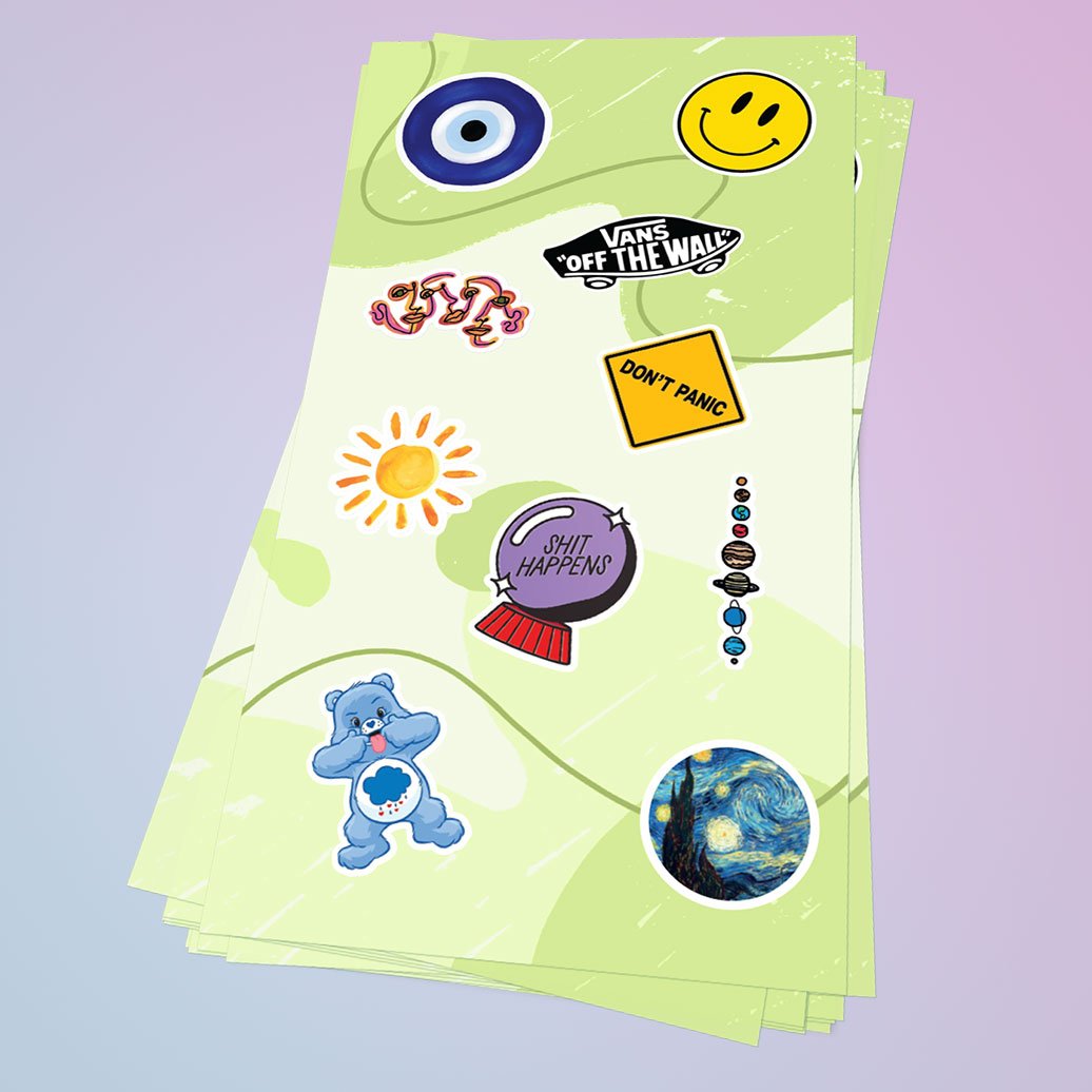 Plancha de stickers resistentes al agua para utilizar en tu termo, vasos, teléfono, regalos, compu, auto, decoración o en lo que quieras